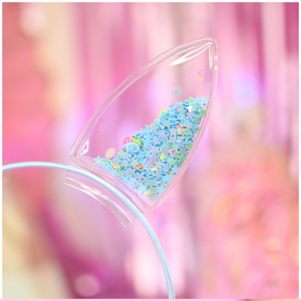 Vincha shaker transparente con estrellitas y orejas de conejo.