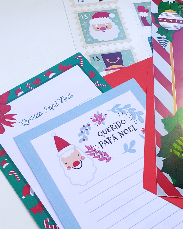 - 2 Cartitas con diseños navideños para escribirle a Papá Noel (hay 8 modelos diferentes).
